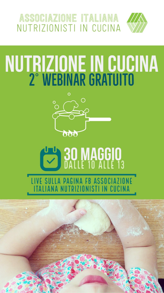 30 maggio 2020 Partecipazione al 2° Webinar Nutrizione In Cucina, evento multidisciplinare online, promosso da Associazione Italiana Nutrizionisti in cucina.